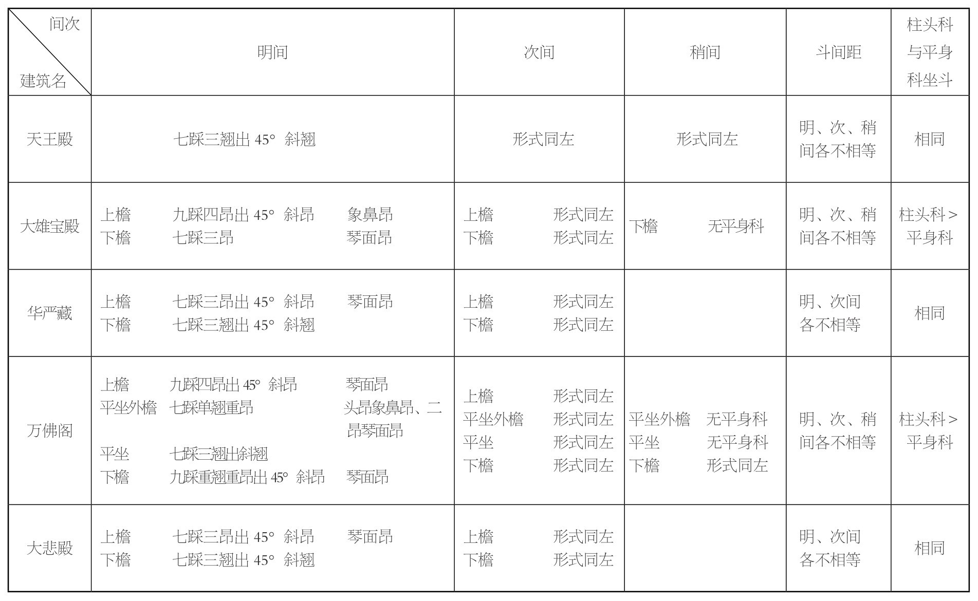 1.10.2 报恩寺建筑斗栱形式、等级一览表