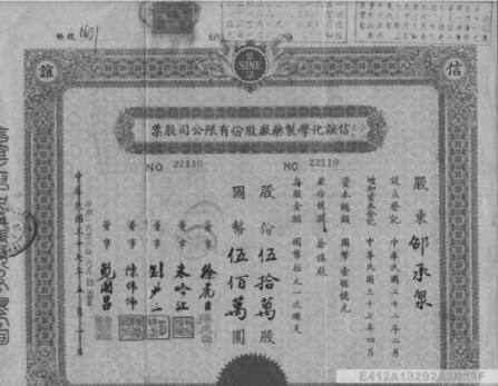 股票应载明的事项(格式)包括公司名称、公司登记成立的日期、股票种类、票面金额以及代表的股份数、股票的编号、董事长的签名。股票早期图样如图2.1所示。