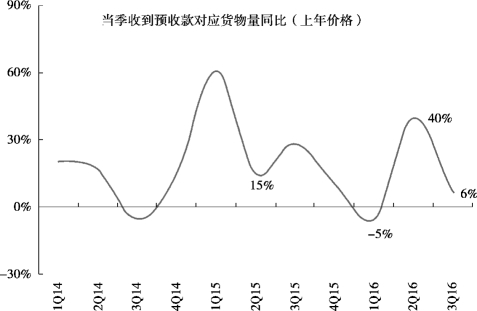 图9.8 3Q16收到预收款对应货物量同比增6%