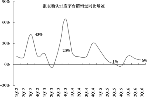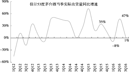 图9.4 估计3Q16报表确认53度茅台酒销量同比增长9%