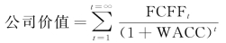 自由现金流贴现模型使用经典的现金流贴现方法对公司进行估值,它通过采用合适贴现率对公司自由现金流进行贴现,贴现结果就是公司的价值。贴现率是公司自由现金流风险的函数,公司获得自由现金流的风险越大,贴现率也越大。这里主要介绍加权资本成本贴现法。