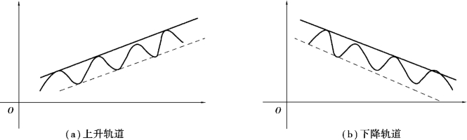 轨道线又称通道线或管道线。在已经得到了趋势线后,通过第一个峰和谷可作出这条趋势线的平行线,这条平行线就是轨道线,也就是常说的上升和下降轨道。轨道的作用是限制股价的变动范围。轨道一旦得到确认,那么价格将在这个通道里变动。轨道线的另一个作用是提供趋势转向的警报。如果在一次波动中未触及轨道线,离得很远就开始掉头,这往往是趋势将要改变的信号(见图10.15)。