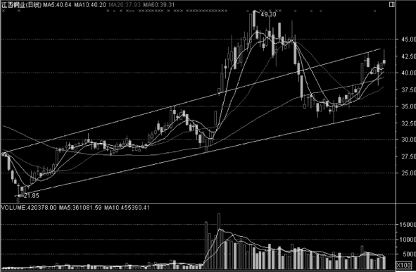 综上所述,该股在上图这一时段内,上升轨道的趋势比较明显,股价始终在合理的轨道线内缓慢上升,预计该股后市仍然不改上升的趋势,可以继续持股或者看量做多。