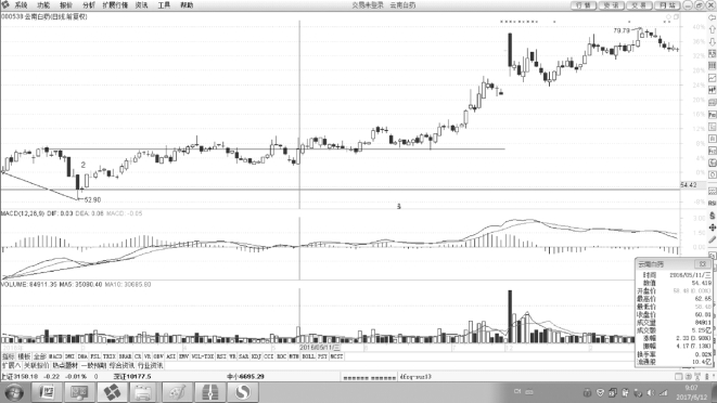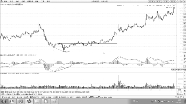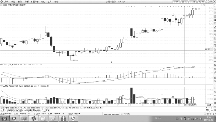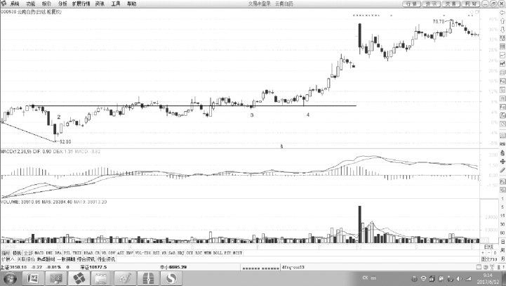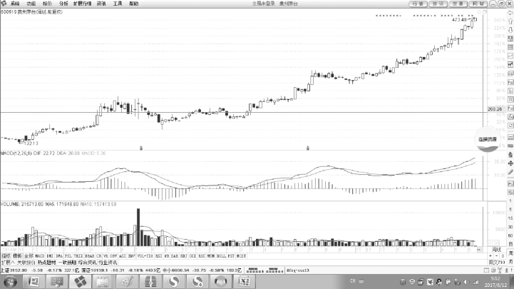 贵州茅台2016年7月至2017年6月的走势如图10.35和图10.36所示。