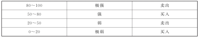 ①WMS%的取值。WMS%的值介于0~100,以50为中轴将其分为上、下两个区域。当WMS%高于80时处于超买状态,行情即将见顶,应当考虑卖出。当WMS%低于20时处于超卖状态,行情即将见底,应当考虑买入。80和20只是一个经验数字,不是绝对的,投资者可以根据各自的风险偏好选择不同的数值。