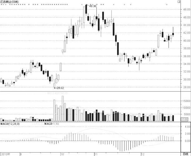 从该股整体K线走势上看,出现射击之星后,股价大幅回调,在图中第一个高点位置小幅震荡整理,并在12月份后缓慢上升。在此时段内,该股从跳空高走至最高点,后又大幅下跌,是一种合理的波动,且与成交量的波动也相互吻合。预计该股后市应为价随量稳,不会出现大幅震荡,可以适当介入。