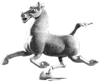 除了“马踏飞燕”的命名之外,专家们依据各自的研究还命名为:“马超龙雀”“赛龙雀”“飞燕骝”“紫燕骝”“天驷足踏飞鸟”“马踏乌鸦”“奔马袭乌”“马踏飞隼”“马踏飞鹞”“马踏飞鹰”“马神房星”“天马戏飞燕”“龙马踩日鸟”等等,热闹的命名从一个侧面验证了铜奔马所带给我们的“天马行空”的体验。