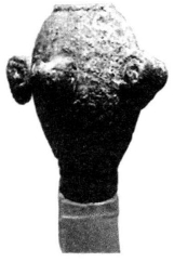 我国有关权杖的实物尤以甘肃境内为多,包括石、玉、陶、铜各种质地。权杖上的装饰为氏族社会图腾崇拜的衍生物,它赋予权杖以象征祖灵所在的神圣含义。火烧沟文化以畜牧业为主体经济,羊受到普遍尊尚,可能是部族图腾崇拜物,故以羊首作杖饰。
