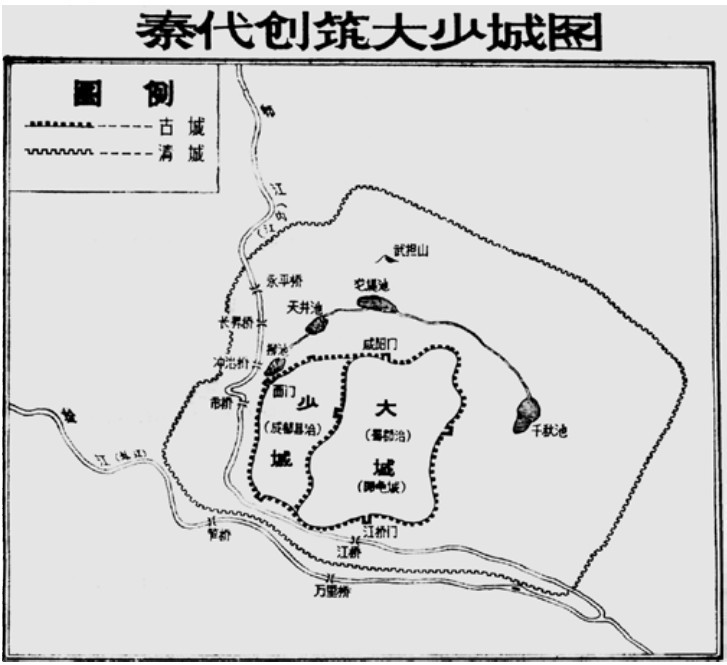 秦代筑成都大城、少城示意图(出自:《成都城坊古迹考》)