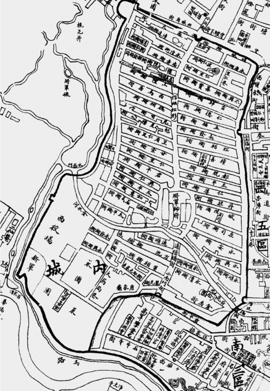 1911年傅崇矩绘制《新订成都街道二十七区图》中的少城,可见每一条胡同