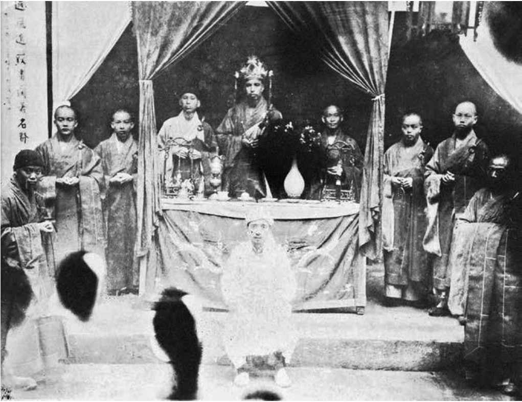 清末寺庙内和尚们做法事时的情景