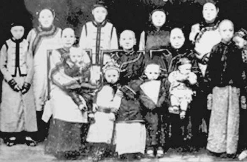 巴金家庭1907年合影。左三为外婆怀抱巴金