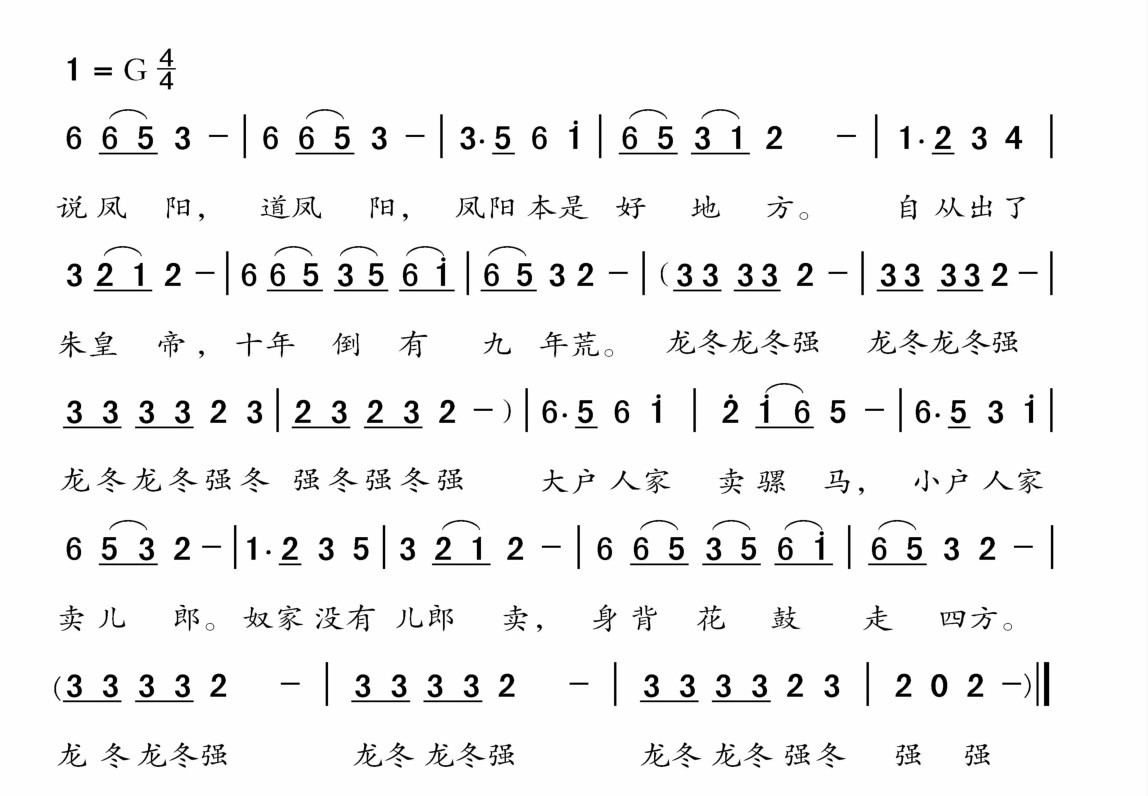 《凤阳花鼓》既是一首家喻户晓的民间歌曲,又是一曲民间歌舞的音乐,是花鼓舞中最为人们熟悉与喜爱的代表性作品。