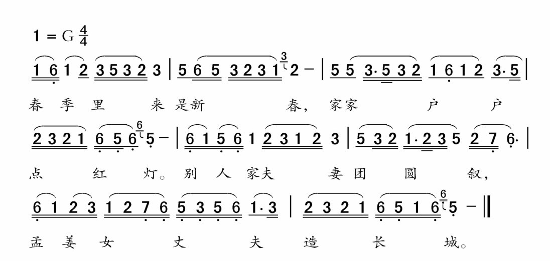 《孟姜女》是在我国流传甚广、影响很大的一个民间小曲。 用《孟姜女》曲调填词的民歌非常多,内容也很广泛,但以诉说离别、悲伤和爱情的题材居多。