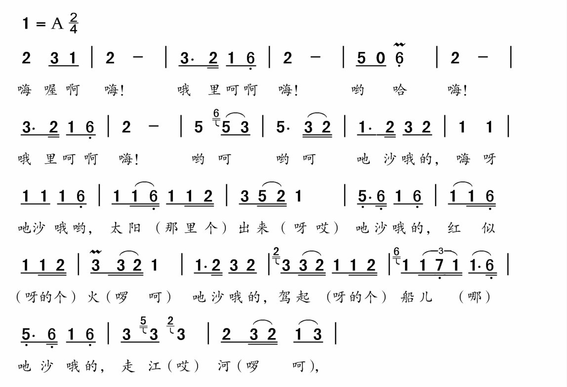 “平板”在歌曲的尾部即转调处,其节奏舒展优美,清新洒脱的旋律再次出现,船老大通过歌词“要唱歌儿一齐来,一齐唱歌多开怀;唱得鸡毛沉河底,唱得石头浮起来”,将自己以及领导下的船夫们必能创造奇迹的自豪自信淋漓尽致地表现了出来。