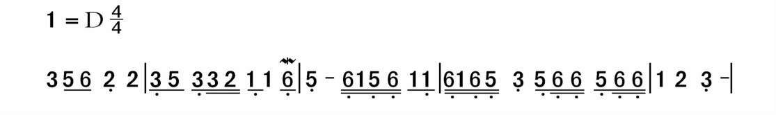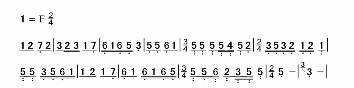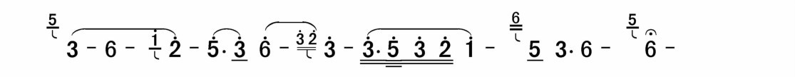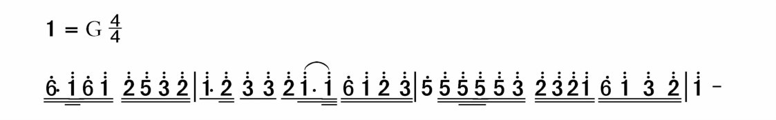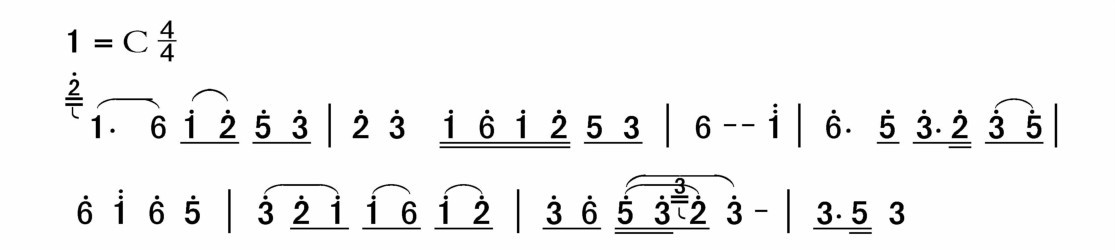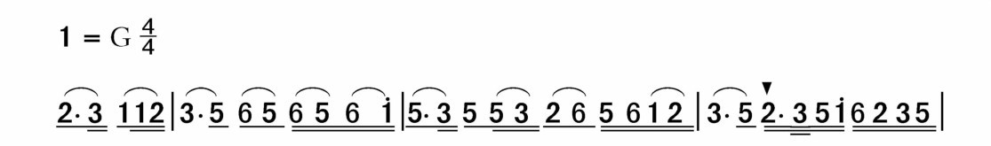 上句表现的是一种倾诉性的、令人沉思的情绪,曲调的音域并不宽广,节奏缓慢规则,最后平稳结束,使凄苦的音调中隐含了一种刚毅而稳健的气质。 主题音乐的上句表现了一位拄着竹棍、迈着沉重脚步而又不甘向命运屈服的盲艺人,在坎坷不平的人生道路徘徊、流浪的凄苦。