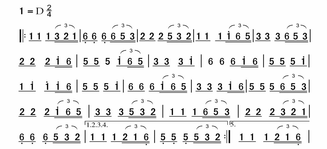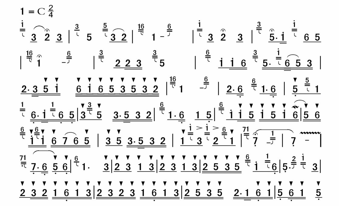 第四段和第五段的曲调婉转,起伏跌宕间仿若有无数条清泉溪水汇成江河,大有一泻千里之势。