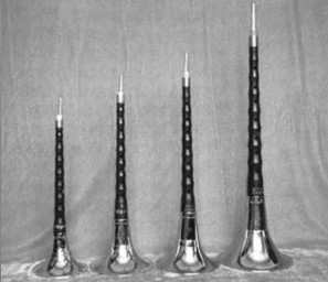 在唢呐木制的锥形管子上开有八孔,前七后一,木管上端有一铜管,铜管上端套一苇制哨子,木管下端装一喇叭形铜质扩音器。 唢呐的音色高亢明亮,悦耳动听。 有些技艺高超的民间艺人能控制气息,吹出与众不同的柔美声音来。 经过长时间的变化改革,唢呐如今已有高、中、低三种。 有的唢呐还加了音键,扩大了音域,增强了表现力。 唢呐可作为独奏乐器使用。 而在吹打乐或地方戏曲乐队中,唢呐惯作领奏乐器使用。 唢呐的音量宏大,声音粗犷,擅长演绎欢快、热烈、雄壮的乐曲,善于演奏技巧性很高的华彩乐段,亦可模仿某些飞禽和昆虫的鸣叫声。