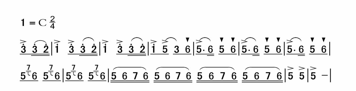 第一段的主题直接采用内蒙民歌《城墙上跑马》的曲调,包括四个向下承递的短小、均等的乐句,听来如歌如泣,充分表达了游子对家乡的思念之情。