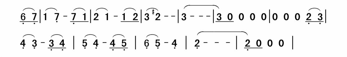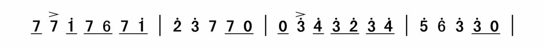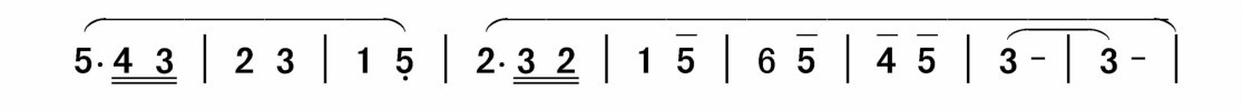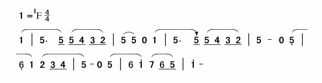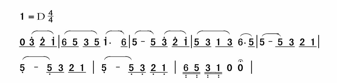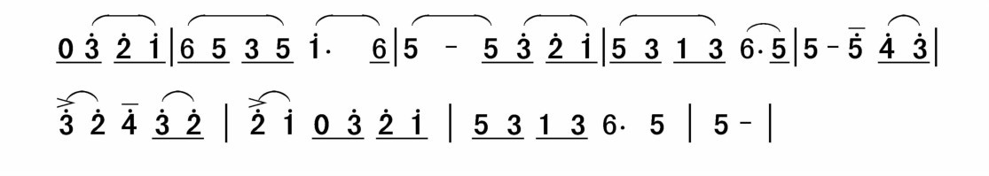 当乐队出现全奏高潮之后,嘹亮的音响迅速沉寂下来,进入到音色、音区比较阴暗的连接部,其最后一句由中提琴奏出,D大调,4/4拍。