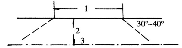 顺岸式码头前沿供船舶停靠和装卸所需的水域,不得占用主航道,其宽度一般为3~4倍设计标准船型的宽度。 前沿水域一般自船位端部与码头前沿线成30。~45。交角向外扩张,扩张部分应达到设计水深,如图3-11所示。