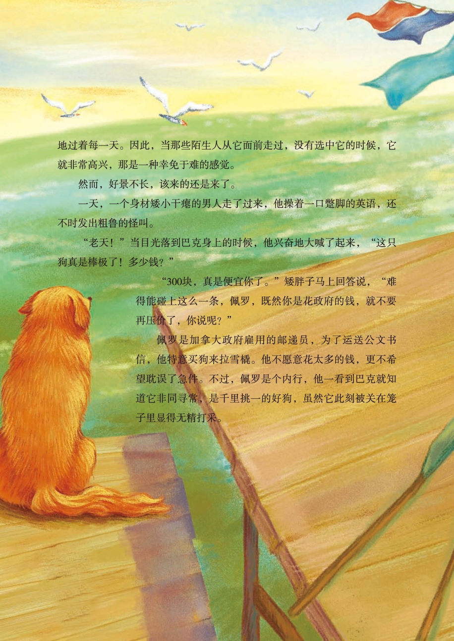 佩罗是加拿大政府雇用的邮递员,为了运送公文书信,他特意买狗来拉雪橇。他不愿意花太多的钱,更不希望耽误了急件。不过,佩罗是个内行,他一看到巴克就知道它非同寻常,是千里挑一的好狗,虽然它此刻被关在笼子里显得无精打采。