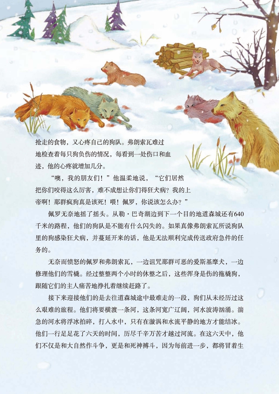 佩罗无奈地摇了摇头。从勒·巴奇湖边到下一个目的地道森城还有640千米的路程,他们的狗队是不能有什么闪失的。如果真像弗朗索瓦所说狗队里的狗感染狂犬病,并蔓延开来的话,他是无法顺利完成传送政府急件的任务的。