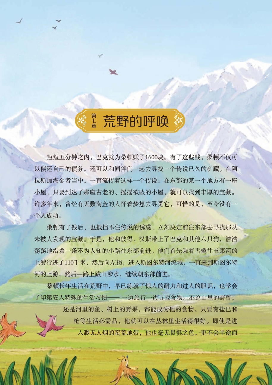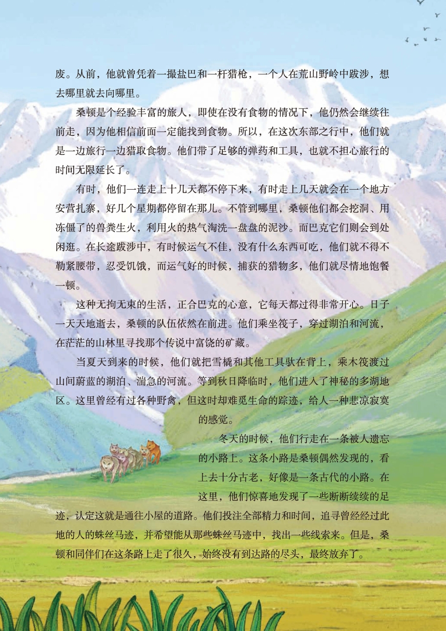 这种无拘无束的生活,正合巴克的心意,它每天都过得非常开心。日子一天天地逝去,桑顿的队伍依然在前进。他们乘坐筏子,穿过湖泊和河流,在茫茫的山林里寻找那个传说中富饶的矿藏。