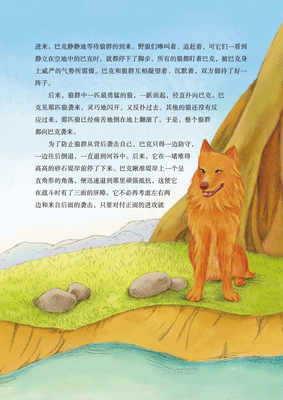 巴克不愧是经验丰富的战斗者,它充分利用有利地势,时而攻击,时而防守,应对自如。只用了半个小时,巴克就凭借自己的力量将狼群击溃了。那些刚刚还气势汹汹的狼现在全都泄了气。它们伸出舌头,气喘吁吁地站在空地上。