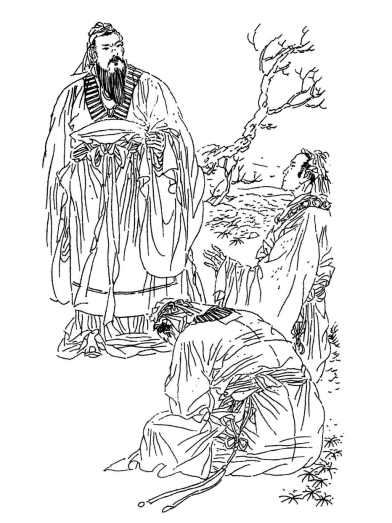 几天之后,子贡等人来到新郑,四处寻找孔子。有一个郑国人对子贡说:“东门有个人好像在等什么人。他脑门像尧,脖子像皋陶,肩膀像子产,但自腰以下比禹短了三寸,疲惫不堪像条丧家之狗。”子贡猜他说的是孔子,赶到东门,果然发现孔子在那里张望。孔子大难不死,所有弟子都安全到达,早把宋国的不愉快都抛在一边,当他听子贡学了那位郑国人的话以后竟然笑了起来,说道:“长相是次要的。他对我的神情说得很准——像丧家之狗,不错不错!”(《史记》)