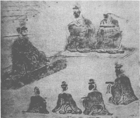 在成都的北郊曾发现一块汉画像砖,是幅石室讲经图。老师头上方格形器物,应是用来挡灰的“承尘”。下面席地上环坐着六个学生,双手捧着竹简,正凝神静听老师的讲学。在右角那个学生腰间挂着书刀,用来削去简册上的错字。