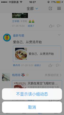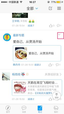 (6)点击笔记右方的下按钮可屏蔽该小组的笔记