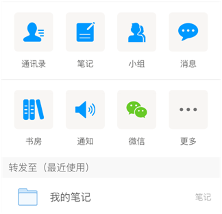点击右上角的转发按钮,可以把笔记转发到如下页面:
