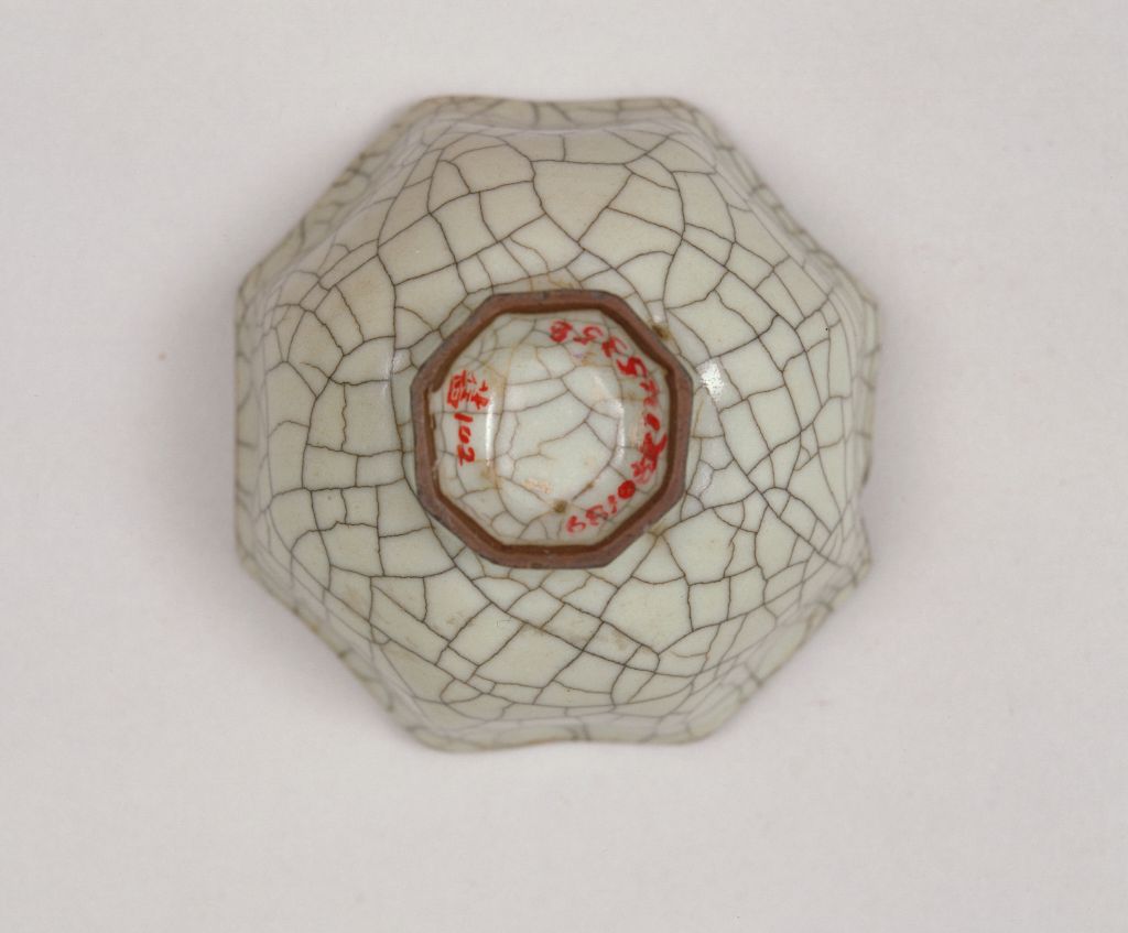 哥窑八方碗,高4.2cm,口径7.8cm,足径2.8cm。现收藏于故宫博物院。