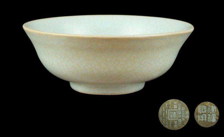 由上可知,汝窑采用了南方越窑的釉色,同时又吸收定窑的印花技术,创造了印花青瓷的特殊风格,南宋周辉《清波杂志》云:“汝窑宫中禁烧,内有玛瑙末为釉,”汝窑产品土质细腻,胎骨坚硬,釉色润泽,釉中含玛瑙末,产生特殊色泽,其色有卵白、天青、粉青、豆青、虾青、虾青中往往微带黄色,还有葱绿和天蓝等。尤以天青为贵,粉青为上,天蓝弥足珍贵,有“雨过天青云破处”之称誉。釉屋莹厚,有如堆脂,视如碧玉,扣声如馨,釉面有蟹爪纹、鱼子纹和芝麻花。
