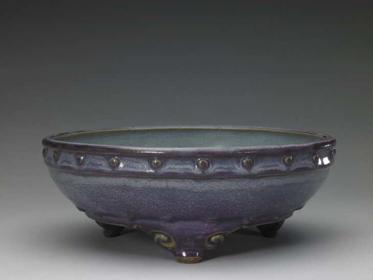 郏县黄道窑,除了烧制白釉、黄釉、黑釉瓷外,从唐代起,还利用不同金属氧化物的釉料,成功地掌握了两色釉技术,产品有黑釉蓝斑器,或在白釉上施青蓝斑彩,形成了此窑产品的独特风格。特别从晚唐开始,鲁山段店窑,郏县黄道窑,内乡大窑店窑和禹州赵家门窑,出现的“雨丝状”的窑变斑彩更为宋钧窑变工艺开创了先河,故有人称这种窑变斑为“唐钧”。钧瓷数百年之盛烧不衰,有其独特的工艺特征和风格,钧瓷的窑变艺术更技高一筹,有着极高声誉。钧瓷铜红釉的烧制成功,是中国古代劳动人民的伟大创造,在中国陶瓷工艺美术发展史上谱写了光辉的篇章。