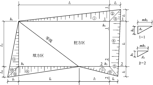 h1、h2——相邻两角点的施工高度(均用绝对值),m;