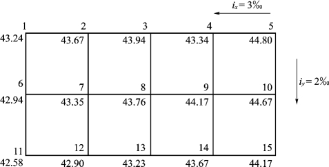 某建筑场地方格网如下图所示,方格边长为20m×20m,试用公式法计算挖方和填方的总土方量。