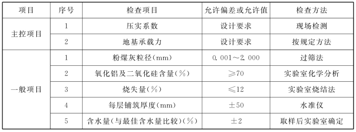 7.粉煤灰地基质量检验标准应符合表2.5的规定。
