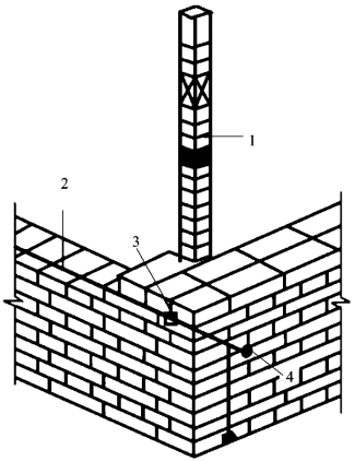 1—皮数杆;2—准线;3—竹片;4—圆铁钉