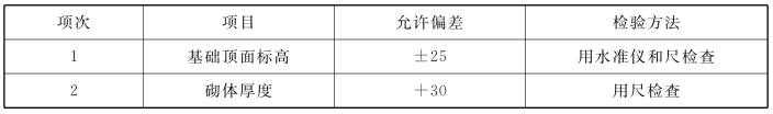 表3.13 毛石基础轴线位置允许偏差(mm)