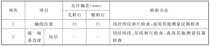 表3.15 料石基础的轴线位置及垂直度允许偏差