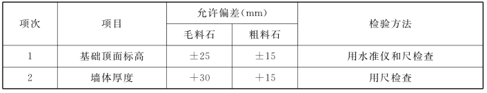 (3)料石基础的轴线位置及垂直度允许偏差应符合表3.15的规定。