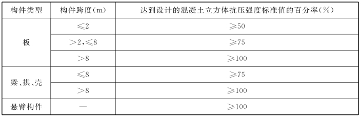 表4.1 底模及支架拆除时混凝土强度要求