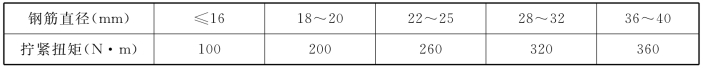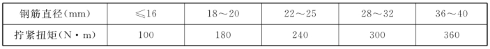 ②接头安装时应用扭力扳手拧紧,拧紧扭矩值应符合本规程表4.10的规定;