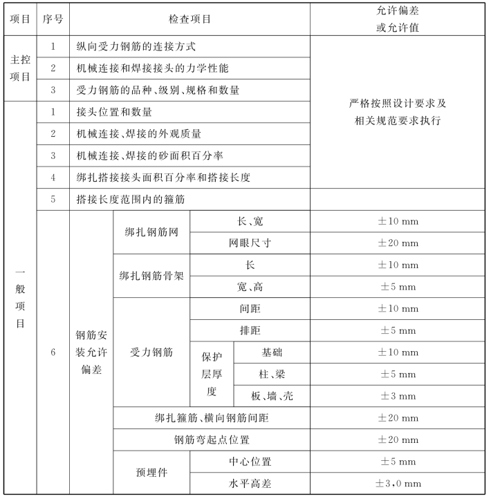 钢筋绑扎安装必须符合《混凝土结构工程施工质量验收规范》《钢筋机械连接技术规程》的要求。钢筋安装的质量要求详见表4.11。