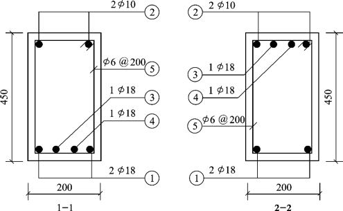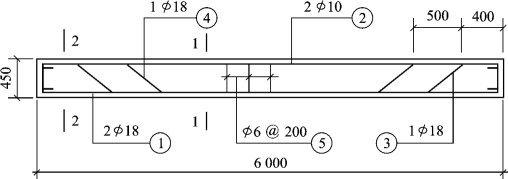 16.在某钢筋混凝土结构中,取一跨钢筋混凝土梁L-1,其配筋均按Ⅰ级钢筋考虑,如下图所示。试计算该梁钢筋的下料长度,给出钢筋配料单。(注:梁两端的保护层厚度取10mm,上下保护层厚度取25mm。)