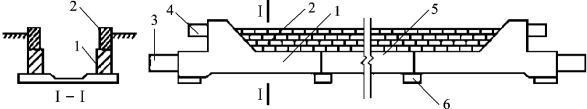 1—钢筋混凝土端柱;2—砖墙;3—下横梁;4—上横梁;5—传力柱;6—柱垫