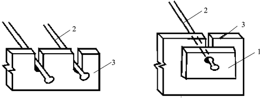 如图5.5所示,采用镦头夹具时,将预应力筋端部热镦或冷镦,通过承力分孔板锚固。它用于预应力钢丝固定端的锚固。