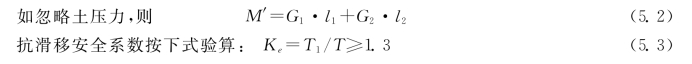 抗倾覆安全系数不得小于1.5,抗滑移安全系数不得小于1.3。抗倾覆验算的计算简图如图5.2所示。